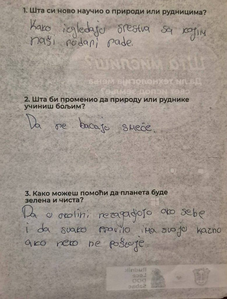 Кроз пројекат Златна стаза природе и рудника, ученици су упознали свет савременог рударства, научили принципе одговорног управљања ресурсима и разумели шта значи бити заштитник природе у времену великих промена.